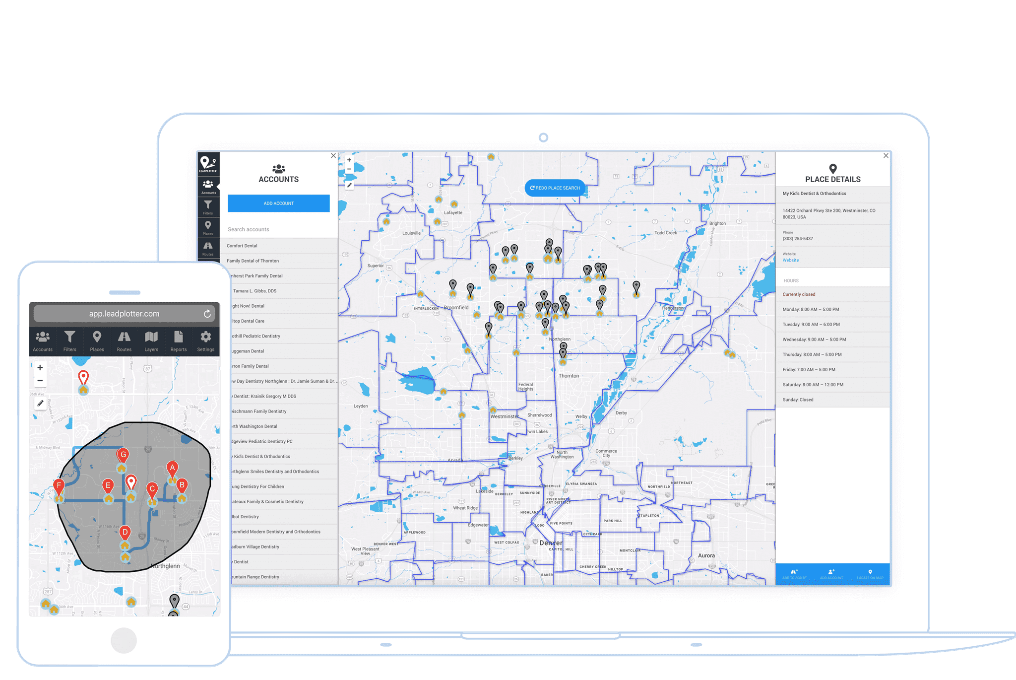 Crush Your Quota. Takes the pain out of sales. LeadPlotter contains all the tools you need to run a smarter business in a streamlined, easy-to-use package. Keep reading to learn why it’s the better option for your organization. LeadPlotter is your Personal CRM and ABM that easily manages all your leads and clients, quickly plans and maps your day based on your destinations, improves customer satisfaction: all from any of your devices, anytime anywhere.